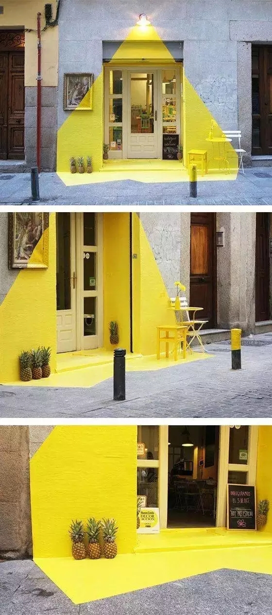 除了簡單的創(chuàng)意,你還可以在你家店鋪門頭來場破壞。