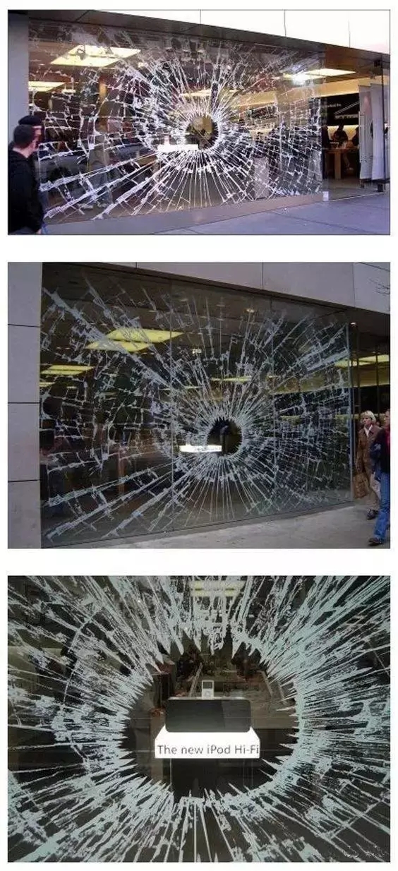 ▲這家店鋪櫥窗玻璃怎么碎成這樣了?走進(jìn)去看看,原來是他家的商品砸的呀?